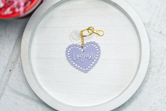 Personalized Doily Heart Valentine Keychain